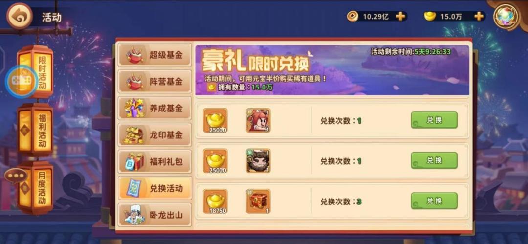 积攒元宝,活动开启时即可兑换对应神将,还不抓紧攒元宝