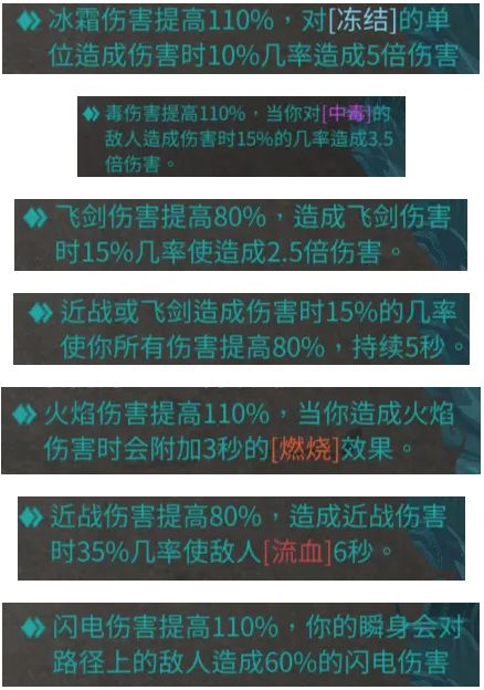 部分词条对职业来说是必要的,例如:火伤+110%的火焰伤害附加燃烧效果是响指流必备词条,雷伤+110%对雷一来说提升巨大。