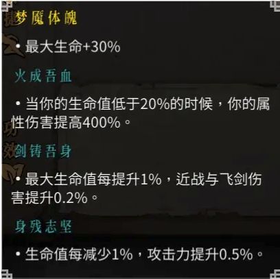 梦魇体魄:此秘籍是无尽模式的必要梦魇秘籍,剑铸吾身 则是此秘籍下的必要分支,想要打到无尽的高层这两缺一不可。
