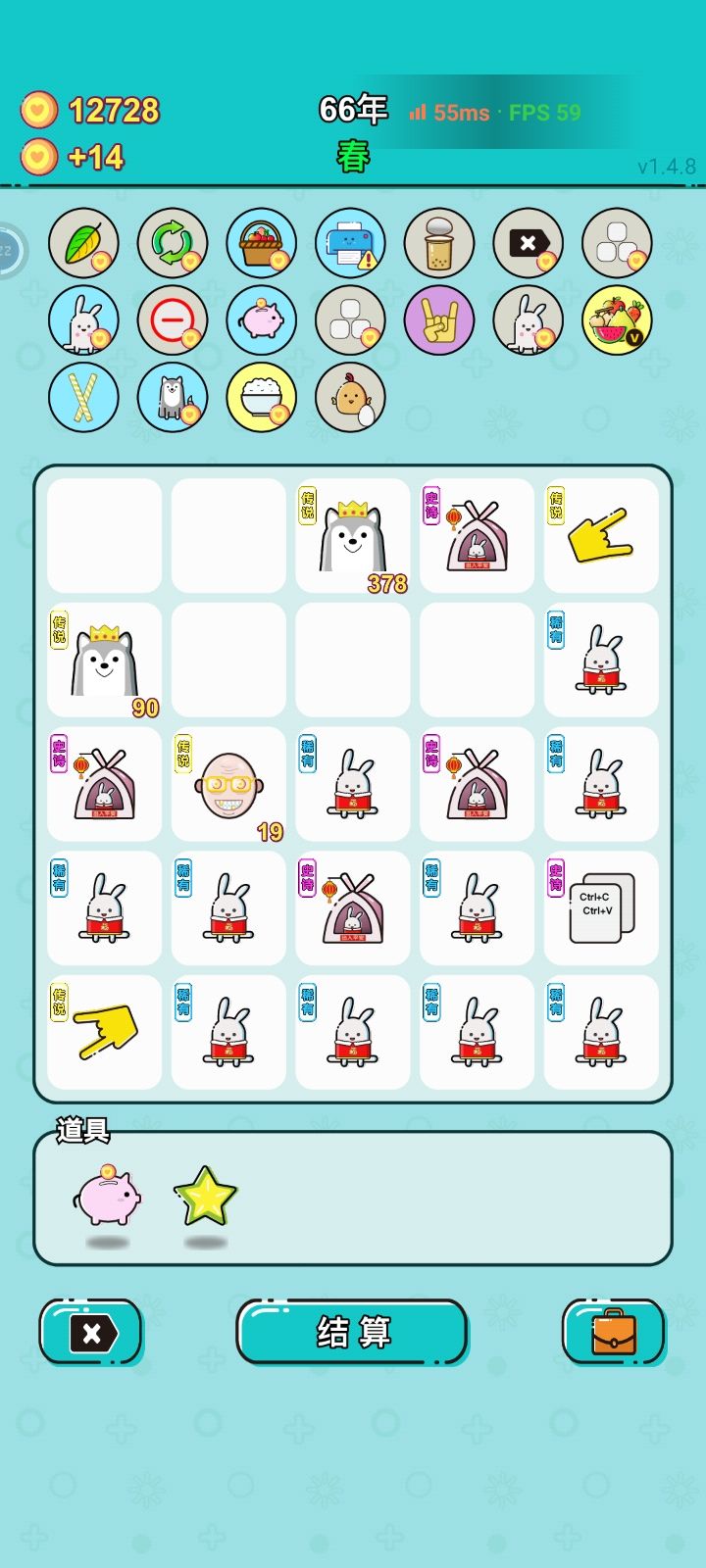兔窝产兔子,复制可以让兔子翻倍狼王吃兔子,首富等于翻倍,金手指用不用都行,可以留意蓝莓让狼王翻倍,两只狼王最佳,后面基本上不会破产了,一共可能玩了不到二十目就毕业了,选了个吉利的年份退出游戏,嘿嘿~