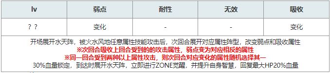 【冥护魔障效果】:全体敌人将来自全属性的攻击无效化