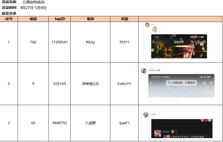 看看哪些道友获得了本次活动的奖励吧: