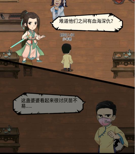 承接上回,蛊婆婆不愿告诉主角团关于苗不易的情况,一行人只好回到客栈休息