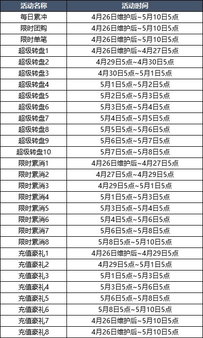 【活动时间】4月26日维护后~4月27日5点