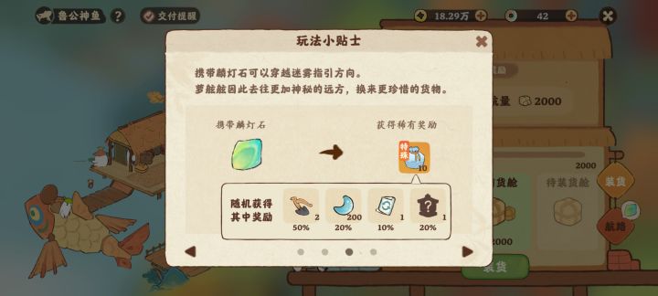 一、鲁公神鱼带麟灯石(可买可不买)可以换珍惜货物,麟灯石通过水产养殖有一定概率获得。(本人是每天会获得一个)