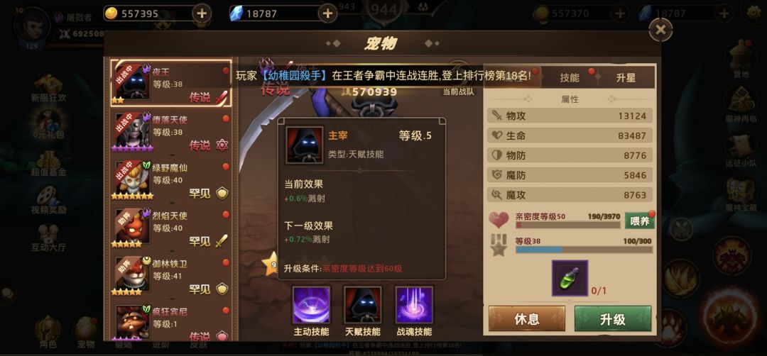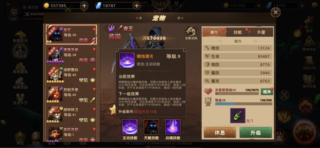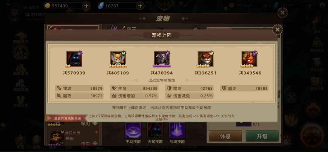 根据自身拥有宠物碎片合理提升自身需求萌宠,增强战斗力,达到快速推图的目的。