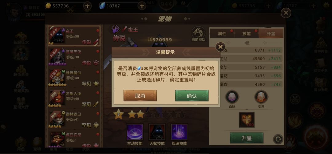 前期培养错了,也不用担心,这里可以重置宠物所有升级材料,只需要300钻石即可。