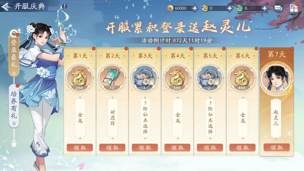 开服期间,每累积通关1章主线,即可领取祈愿符*10,上限100张!