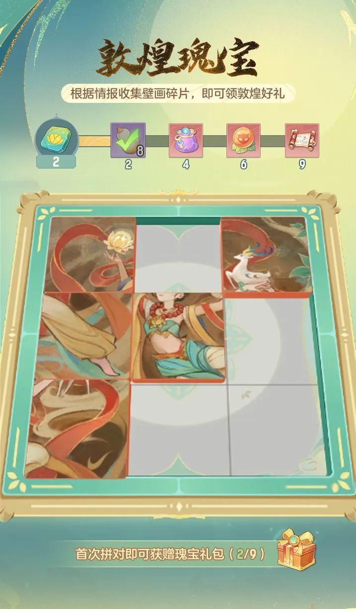 满壁风洞,天衣飞扬。敦煌壁画是珍贵的历史遗存,是用画笔记录的历史,御灵师们参与日常玩法可收集壁画碎片,修复壁画后后可获得一定的奖励。