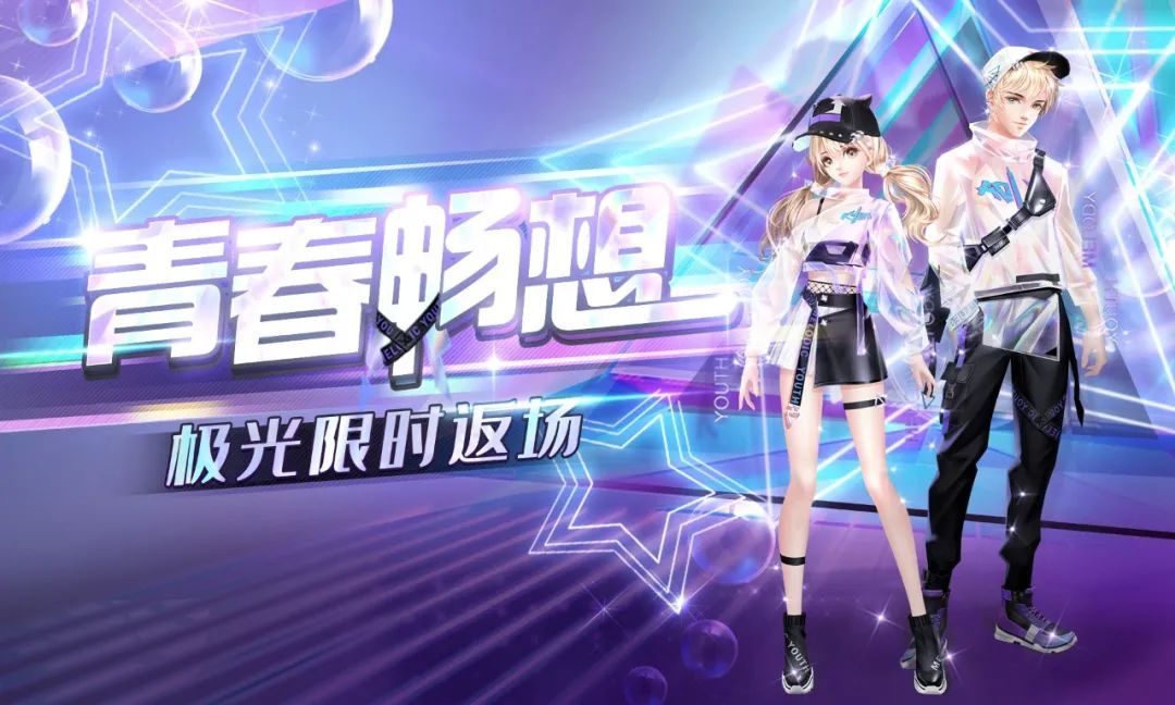 大家心心念念的美衣也返场归来啦!明天(4月26日)10:00开始,臻品套装-青春畅想将返场【超时空极光】!一起化身滑板潮人,在炫舞世界体验运动风潮~