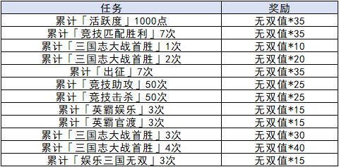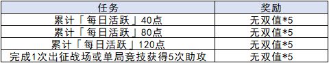 活动期间,玩家可通过完成每日任务可获得无双值奖励,也可通过找回领取错过的奖励哦~