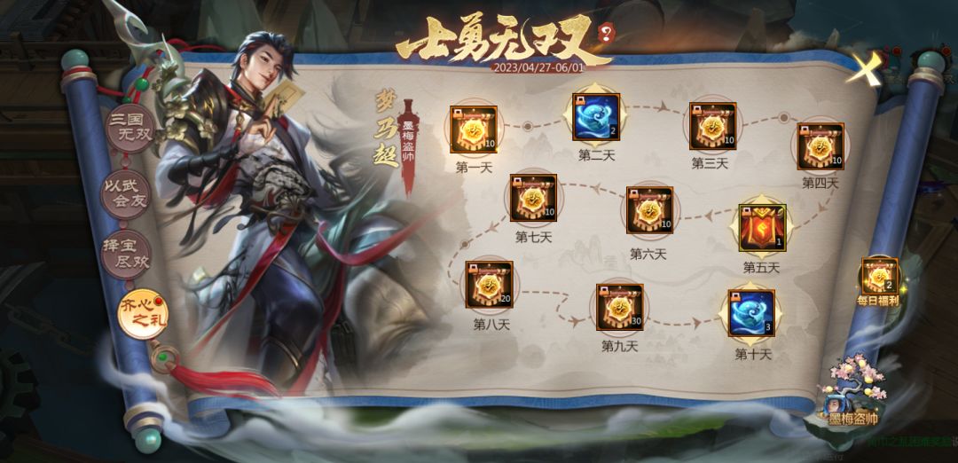 梦*马超为大家准备了齐心之礼,每日完成签到即可领取无双值、夜明珠和称号奖励。