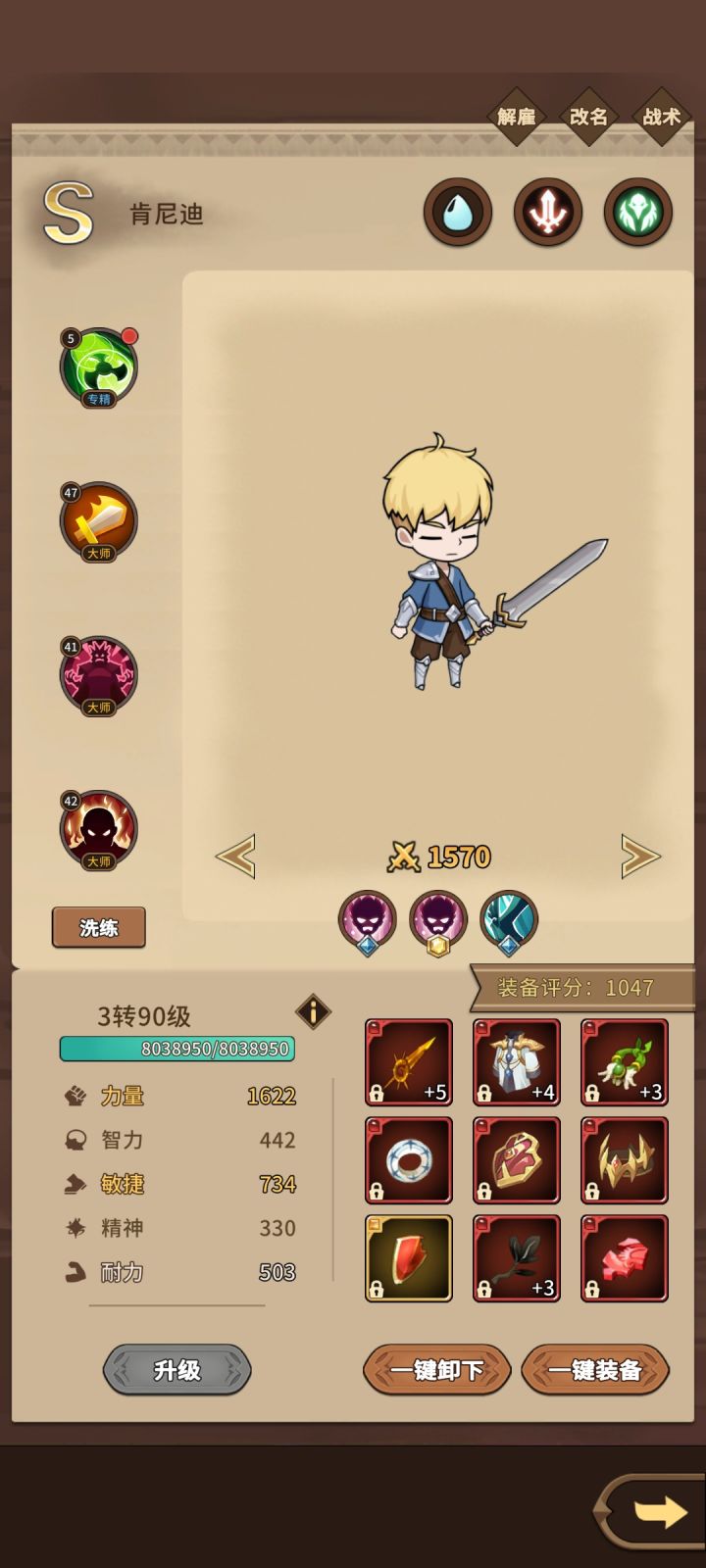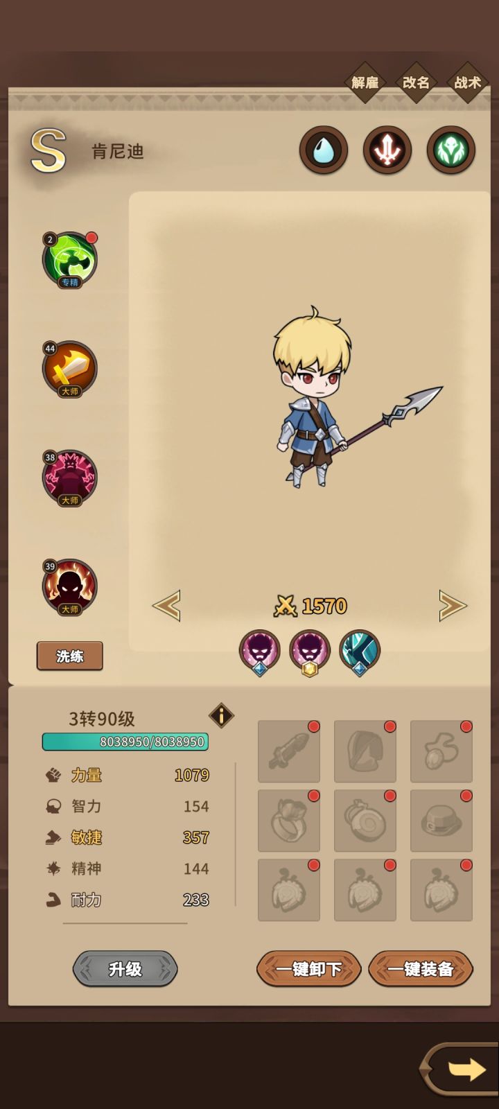 考虑到概率,3转90级升级190次,190*(0.5*3+0.25*5+0.5*2)=712.5,再加上190次主属性保底+1,再加上1转,2转,3转加的属性大概两三百,712.5+190+250=1152。保底裸妆1152点属性点,但是运气好天赋会超常发挥,升级加主属性也不可能把把+1,所以主属性裸妆1300,是可以期待的。再加上,6件装备稍微精炼过后每件+50主属性是很轻松的,那就是300,再加上3件图腾,龙魂满值%10,另外两件各%5,不用追求满值,%15是没那么难的,(1300+300)*1.15=1840,精炼搞满,城镇主属性突破2000是可以的。战斗状态,在技能和装备buff的加持下,可以去突破3000主属性。如果你是个资深冒险手册玩家,你能想象3000主属性有多恐怖。对了,如果再加上套装属性呢。