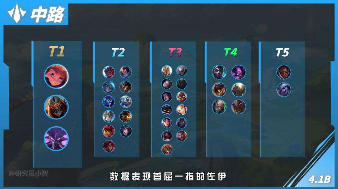 而此前强度爆棚的洛在4.1b版本则是直接被大幅削弱,伤害能力直线下降,在排行上也掉出了T1的位置。