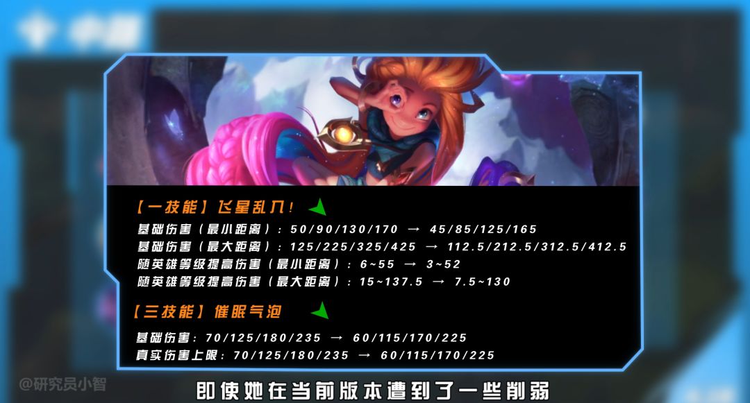 即使佐伊在当前版本遭到了一些削弱,但在中路的地位依旧没有动摇,而且小幅的数值削弱没准能让佐伊走出ban位,提升一些出场率。