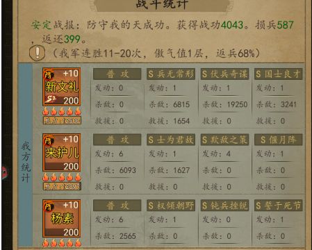 来护儿带智力宝物 和 本身就很肉的杨素 统率和智力都不低 再加上满减伤 我就问下还有谁能打得动。