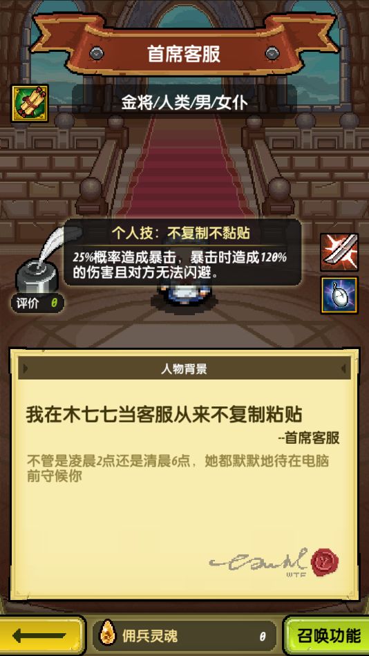 但在高难度的战斗中,你发动的技能是否强力,是决定胜负的关键。像角色“首席客服”的技能【不复制不粘贴】虽然发动概率高而且无法被闪避,但伤害倍率非常低;如果在对付闪避值低的敌人时会非常吃亏。