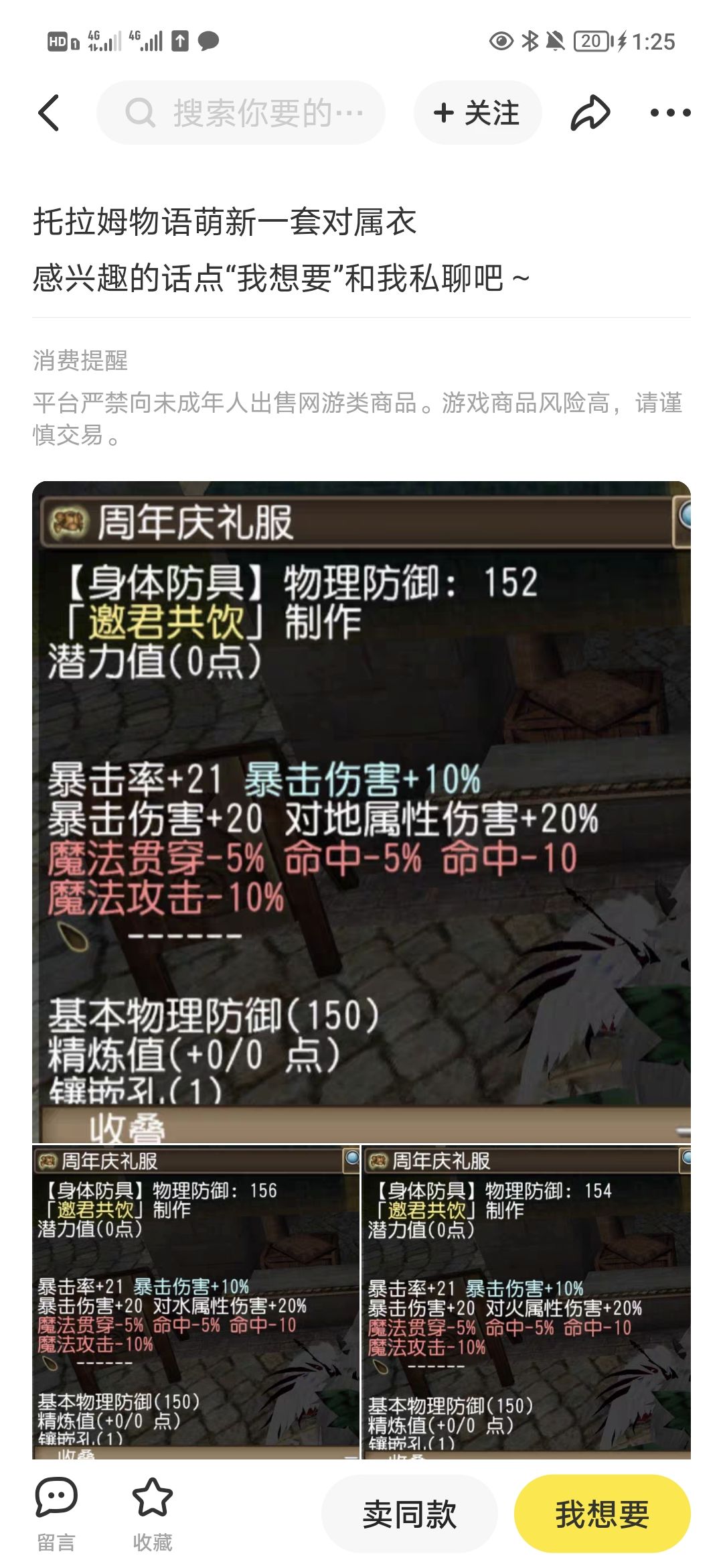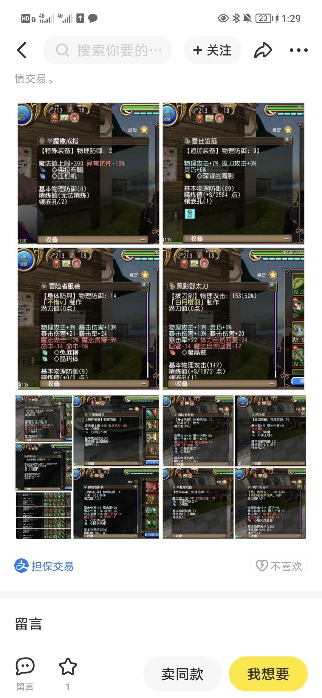 现在商人的底线这么低了么,下午看到的六千出的黑影拔晚上一百二上了咸鱼,板子挂7,8千都没有人要即将成为烧火棍的通用杖挂到了120,7a的衣服他敢挂30,世界俩千收的8a他敢卖四五十块,十a十能力的稳附吹上天然后180,垃圾配装半魔像六孔七孔敢要150,圣诞树倒卖敢卖320,可能还是科技穿的。而且最离谱的还看到一个打着萌新装备旗号的卖单孔20对属,卖高价就算了,他尼玛甚至练21都舍不得给你附,不把别人当人看。