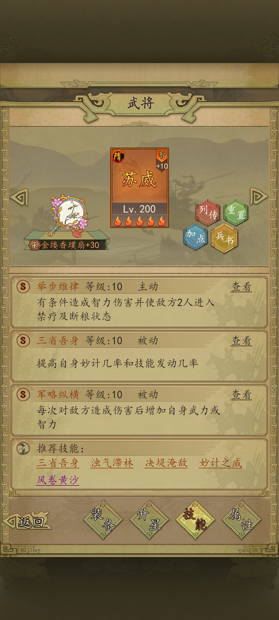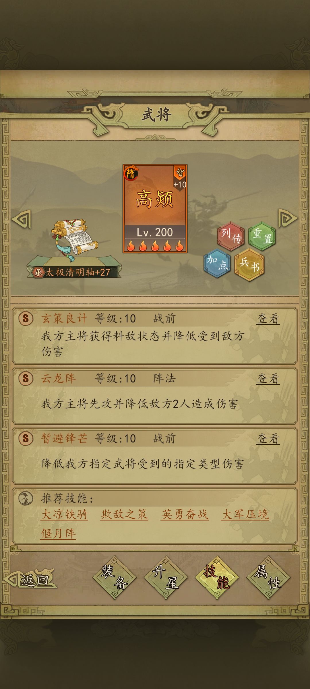 兵书必须要带这个,不然效果不好,苏威打伤害,宇文化及肉,高颖肉和增伤。