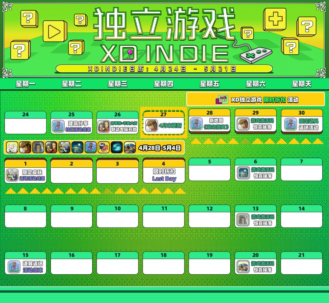 🕔 XD独立游戏5月日历