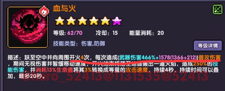 题外话:在最后一版后提出来在开局的时候要开了紫技能受击4次开橙技能才会有血雨,会耽搁一两秒,手感不好,正式服应该会进行优化