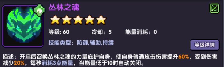 而且一般会考虑带丛林之魂还会有20%的减伤,合计减伤就有53%了,可以说非常肉