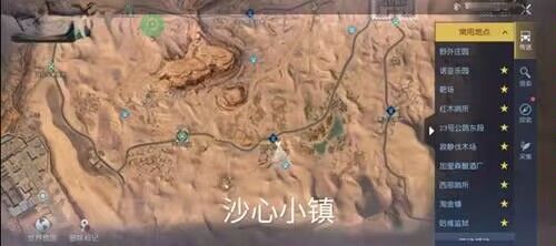 金色沙漠一共有14个打卡点:沙心小镇700,-527、车费聚落5302,-799、监狱哨所7731,-1458、狂暴之地6193,-724、汽车坟场6298,-592、飞机残骸6578,-551、房车基地6991,-562、仙人掌路牌6981,-577、沙漠绿洲7339,-790、沙漠雷达站7733,-1200、黄沙风车6845,-1341、尘埃记忆6074,-1416、军事基地5436,-855、危机重重5865,-505;