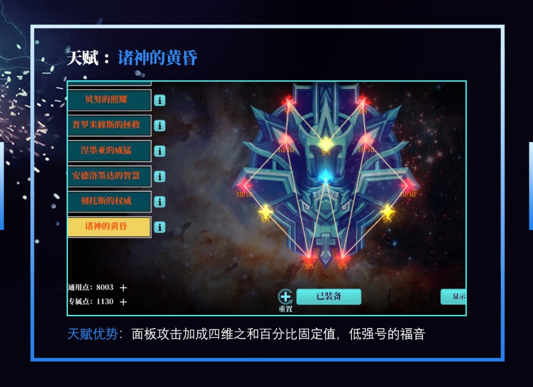 诸神天赋,固定四维之和的面板收益+ 元素伤害 + 异常增伤