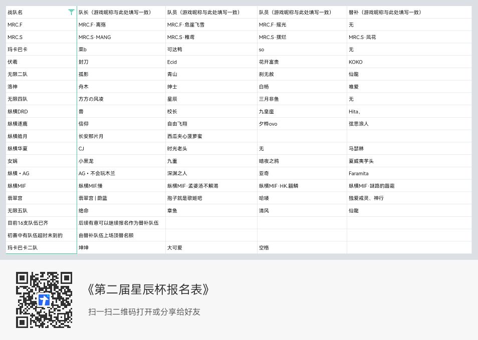 本届星辰杯新建队伍