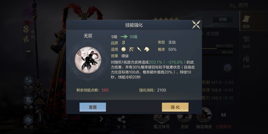 但是记住,这个套路武将的战技最好都能升到4级以上最稳妥,不然伤害不够很容易被拖死。