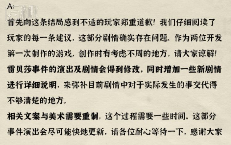 Fry说她并不想强迫玩家们去接受自己并不想接受的剧情,所以最终她们还是决定对这条剧情线做出一些修改。
