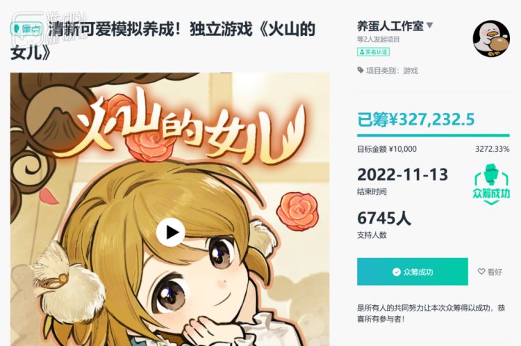 这次以1万元为目标的众筹最终筹得了超过30万元的款项,也正是以这次众筹为契机,作品请到了声优中原麻衣来为游戏中的女儿作日语配音。而在游戏正式发售后,众筹参与者的好评率高达99%。