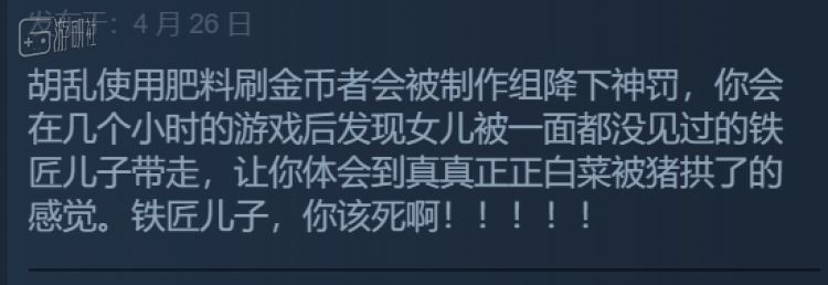 一些玩家发现这个漏洞后便借此发家致富,直到结局才发现这些交易会刷高好感度,让自家从小富养、德智体美全面发展的宝贝女儿嫁给了从未露面的老铁匠儿子当媳妇。