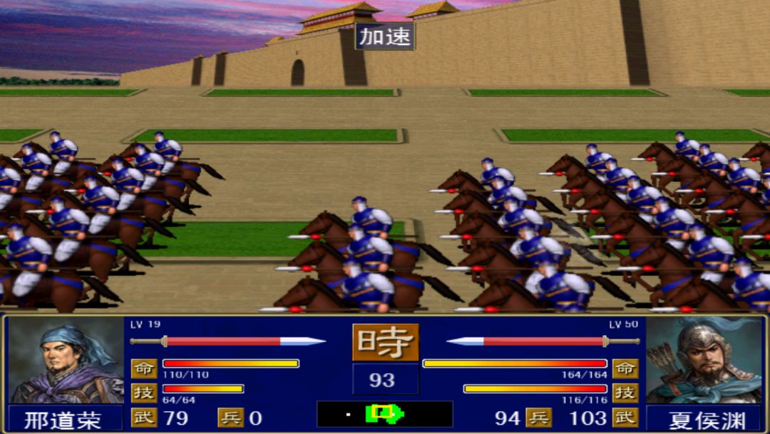 这个游戏最吸引人的莫过于武将升级系统及必杀技了。在游戏中,武将只要打胜仗就会获得经验值,只要达到一定的等级,就会升职,同时获得一项更新更强的必杀技。而每名武将可升3次职,第一次需10级、第二次需20级,第三次需40级,也就是说,最终可以拥有4项必杀技(在游戏开始时每名武将就已经有了一项必杀技)。