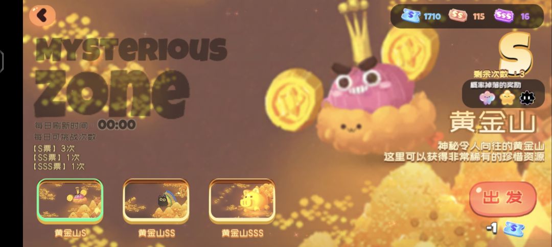 大家刷黄金山时如果果冻不理想或者果冻券这些数量不满意的话,可以在还没结束时退出游戏,结束后台,重新进,这样就不会消耗黄金山门票,然后重新刷,刷到自己满意为止。