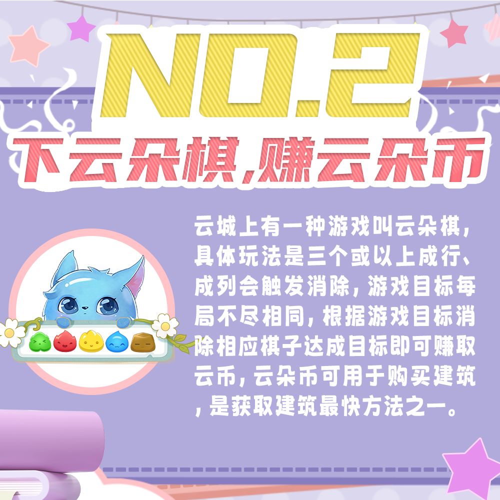 云城上的通用货币有云朵币、彩虹云朵币、高级云朵币、银币,均可以通过消除游戏获取。