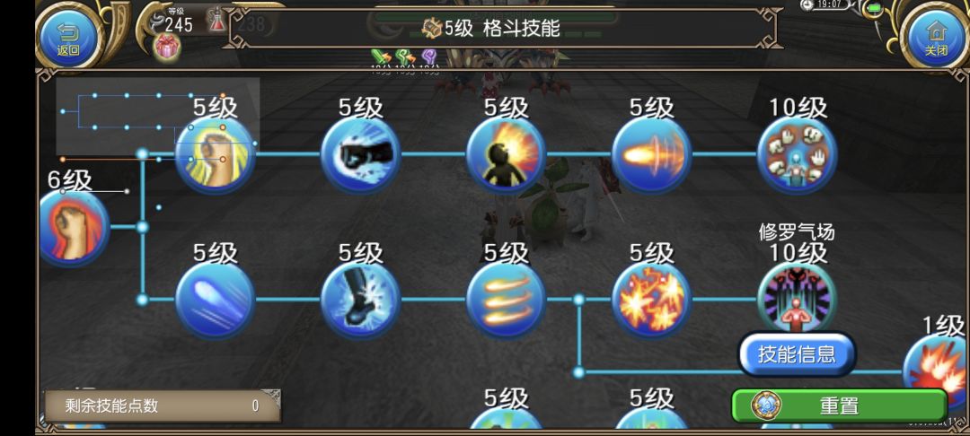 在关闭修罗后再进行普攻将消耗修罗层数自动进行白金殴打,且回复攻击回复对应蓝量,攻回越高回复蓝量越多。所以可以在关闭修罗后,A一下站在BOSS脸上开始读其他BUFF,白金殴打会自动回蓝,这也是拳魔自循环里最重要的一环。如何保证自己的修罗层数得到最大效率的使用将极大影响你的输出效率。(前提是别被BOSS打死)