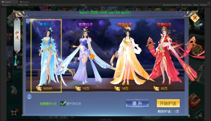 每天可以免费护送3次,仙女根据品质不同给予回报的经验值也不相同,玩家可以通过护送令牌提升仙女的品质。