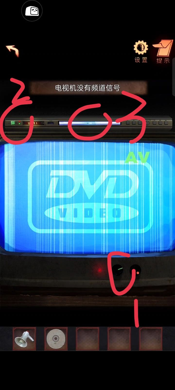 打开电视的时候要记得先调到DVD频道(图中数字1)再打开DVD机(数字2)再放碟片(数字3)然后用扩音器录下来就行。