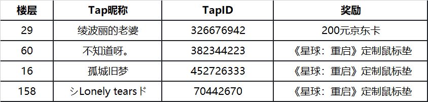 幸运参与奖(3名):《星球:重启》定制鼠标垫。由官方从所有参与者中抽取。