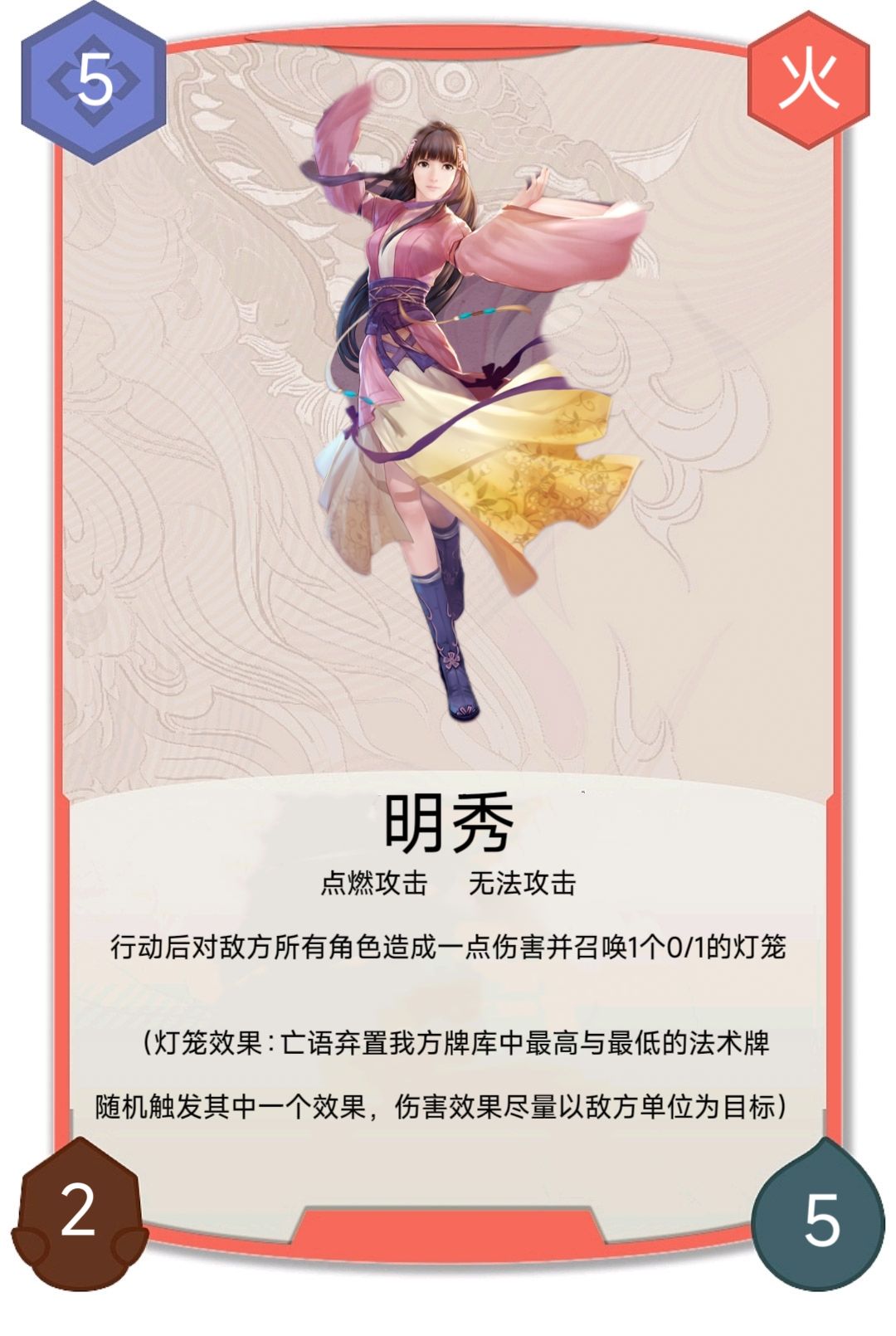 )那我想了一下就和火的弃牌比较贴切了 加入快乐的随机元素 可能是自损800也可能是伤敌10000 再加上每回合全场打1的点燃伤害稳定解一些低血怪仙六角色卡设计第二弹