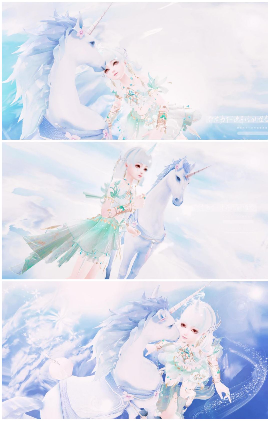 【满月颂歌】主打的就是一个仙气梦幻,穿全套新时装可变身激萌独角兽,阳光彩虹小白马昂首阔步,向着空中的霓虹飞跃而起,梦幻至极,连猛男菌都控制不住内心的粉色泡泡。