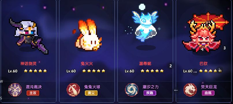 奥义:推荐兔子(目前伤害最高)其余选择:斯托,牛(两只通用性强,适用任何场景,考虑通用性可以拉这两只,不拉夜鸮)