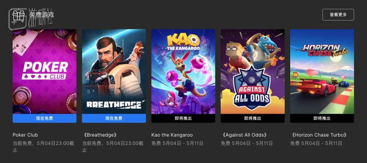 下周免费游戏为3D平台冒险游戏 《袋鼠闯天关2》,多人平台派对游戏《Against All Odds》和复古竞速游戏《追踪地平线》(Horizon Chase Turbo),5月4日开始领取。