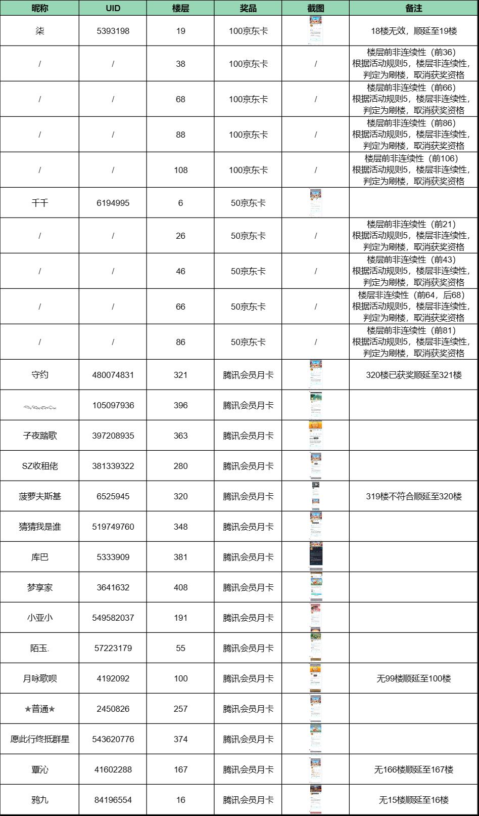 ps:因不符合活动规则第五条而取消楼层对应奖励随机抽取随机送出,以下为随机抽取楼层。