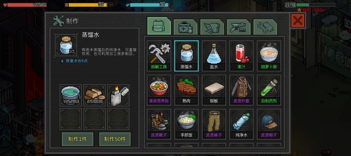 点开点开左下角的制作,选择蒸馏水,用雨水和木材加打火机就可以生成。