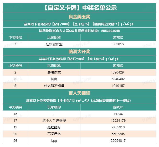 中了实物周边的老爷请添加官方人员QQ:2853303648,并附上您的昵称、地址及联系方式,以便我们尽快发奖~再次感谢!