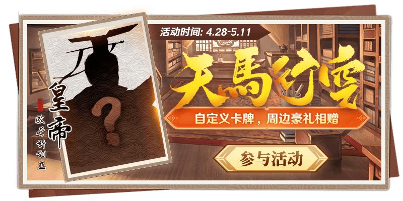 在此婉儿诚邀各位老爷发挥天马行空的想象力,来设计一下自己心中的那一张卡牌!无论是已有的还是游戏内尚未发布的帝卡,训卡,策卡都可以哦!同时阿恒也给大家准备了小礼物,欢迎各位老爷参加~