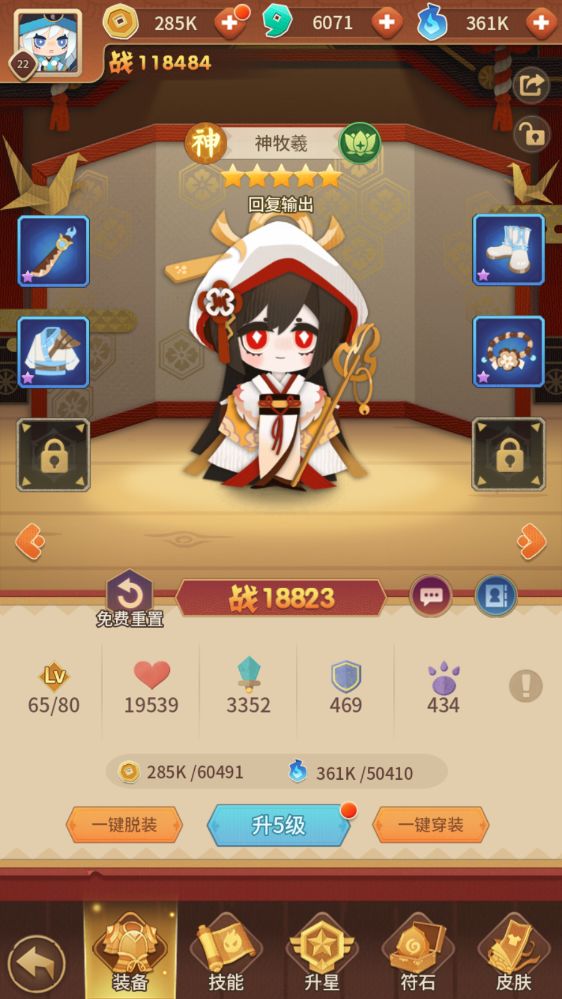 在《元气战纪》中,御妖师运用强大且熟练的御妖技巧,可以让我们给自己喜欢的式神进行「一键升级」。而式神升级需要消耗两个道具——英灵飞升而留存于世的「英魂」,和能使神魔百鬼推磨的「金币」,当式神提升到一定等级,御妖师还需要一定数量的「式神突破石」助式神攻关。玩家可以在「快速挂机」、「集市」、「日产商店」、以及「材料副本」中获得上述的几项材料。