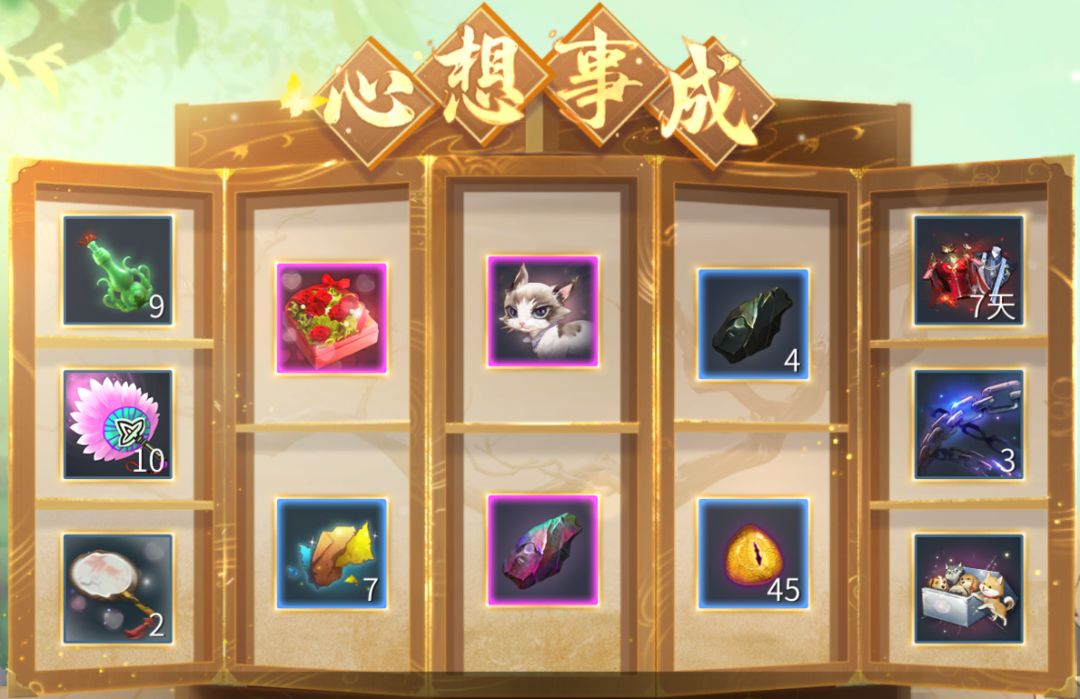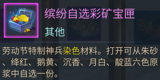 若转动机关数目达到2、5、7、9、12还会获得额外奖励,其中包含缤纷自选彩矿宝匣,可在多种神兵染色材料中自选心仪款,终于不用担心自己会开不到想要的神兵染色原浆了!